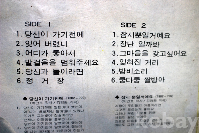 수록 곡 목은 사진을 참조하시기 바랍니다