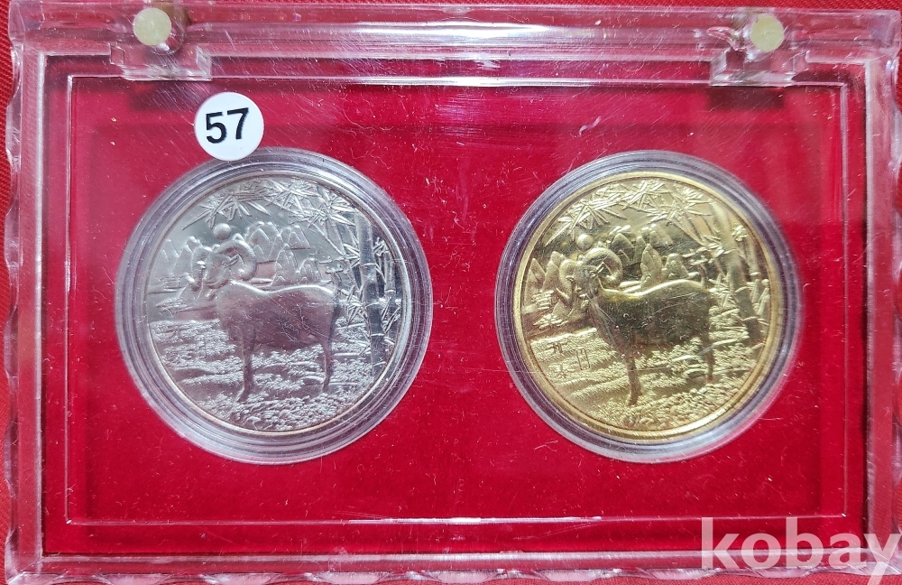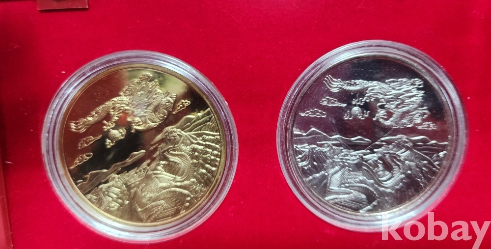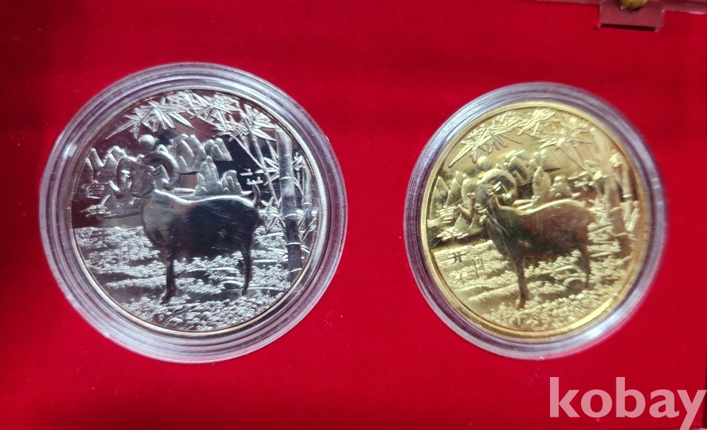 금색과 은색 으로 치장한 용도 미상의 두개가 들어 있읍니다,