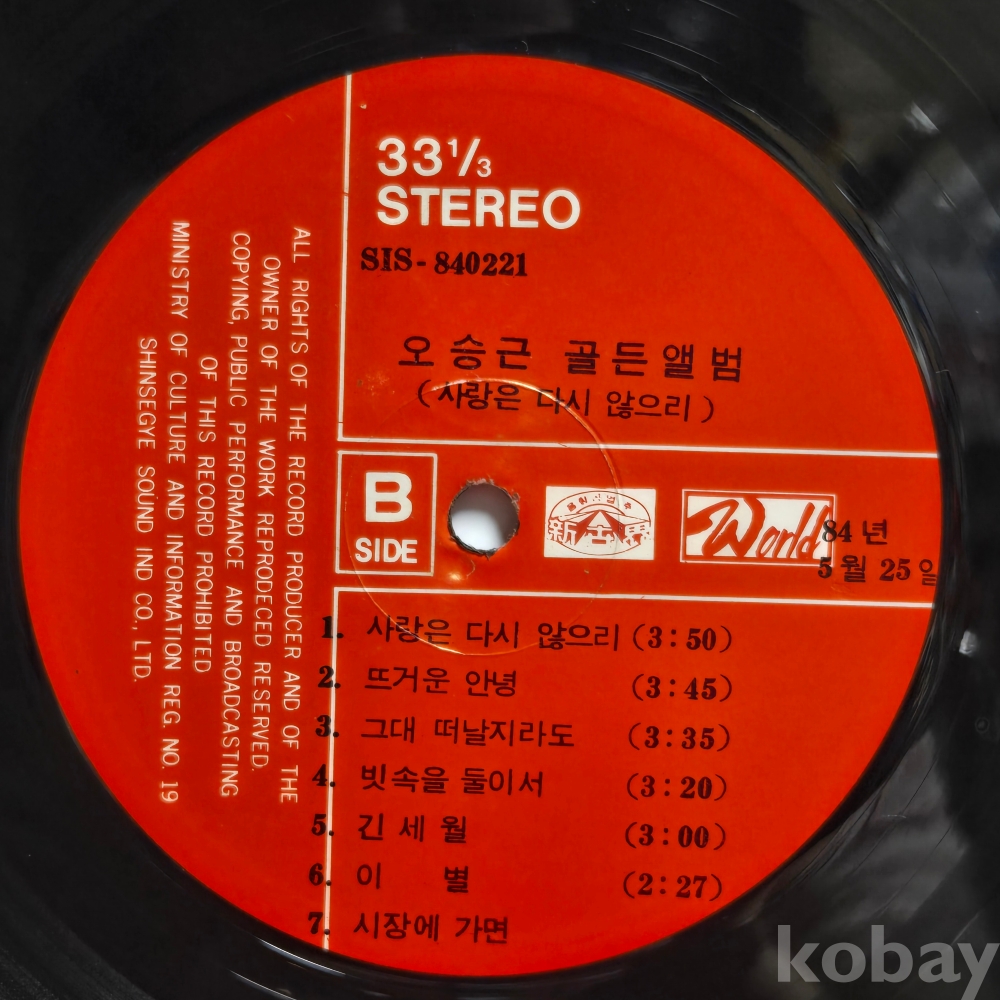 중고 LP인 관계로 취소나 반품도 불가합니다.
