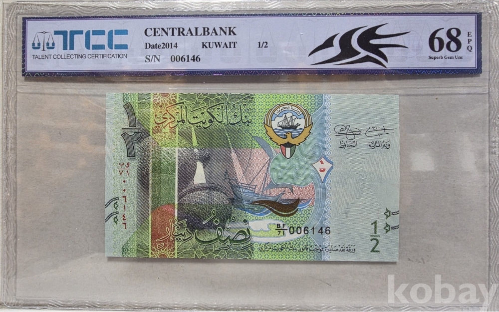 -2014년 쿠웨이트 1/2디나르 지폐 TCC68 등급 입니다.