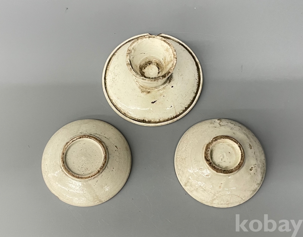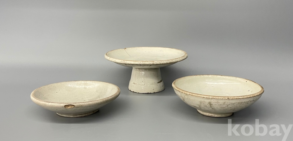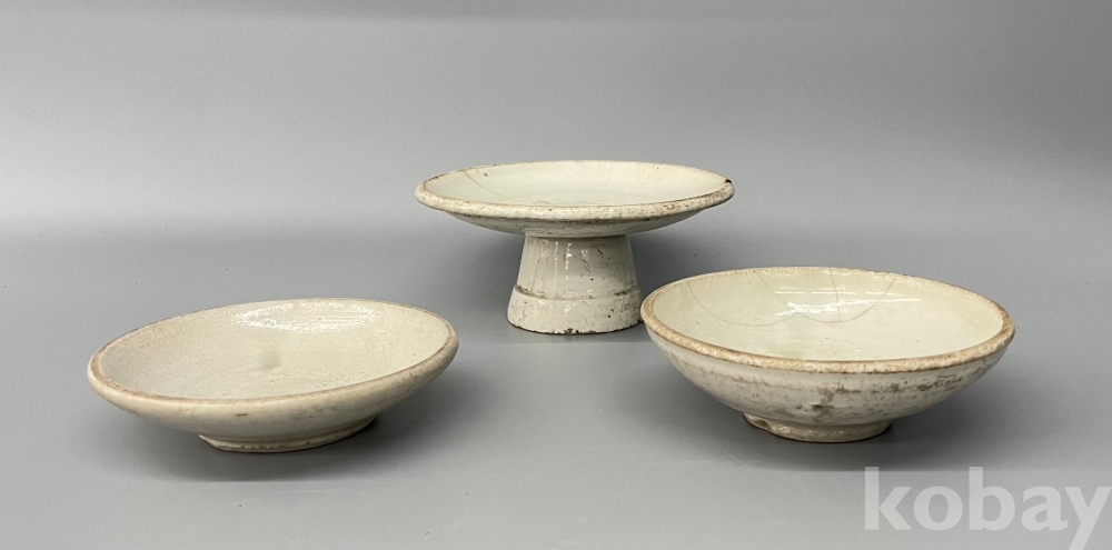 작품명 : 청송 백자 제기 1점, 접시 2점 일괄