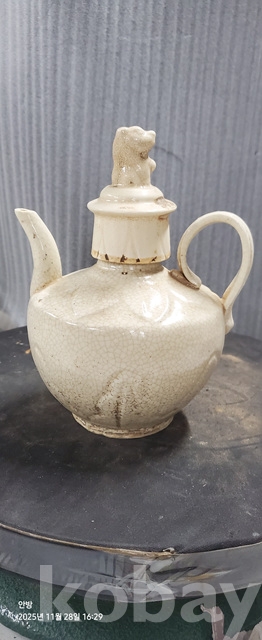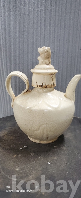 b-49.오래된 송백자연화문 찻주전자