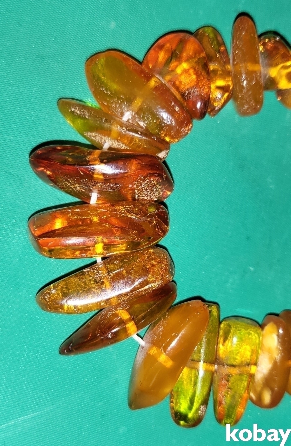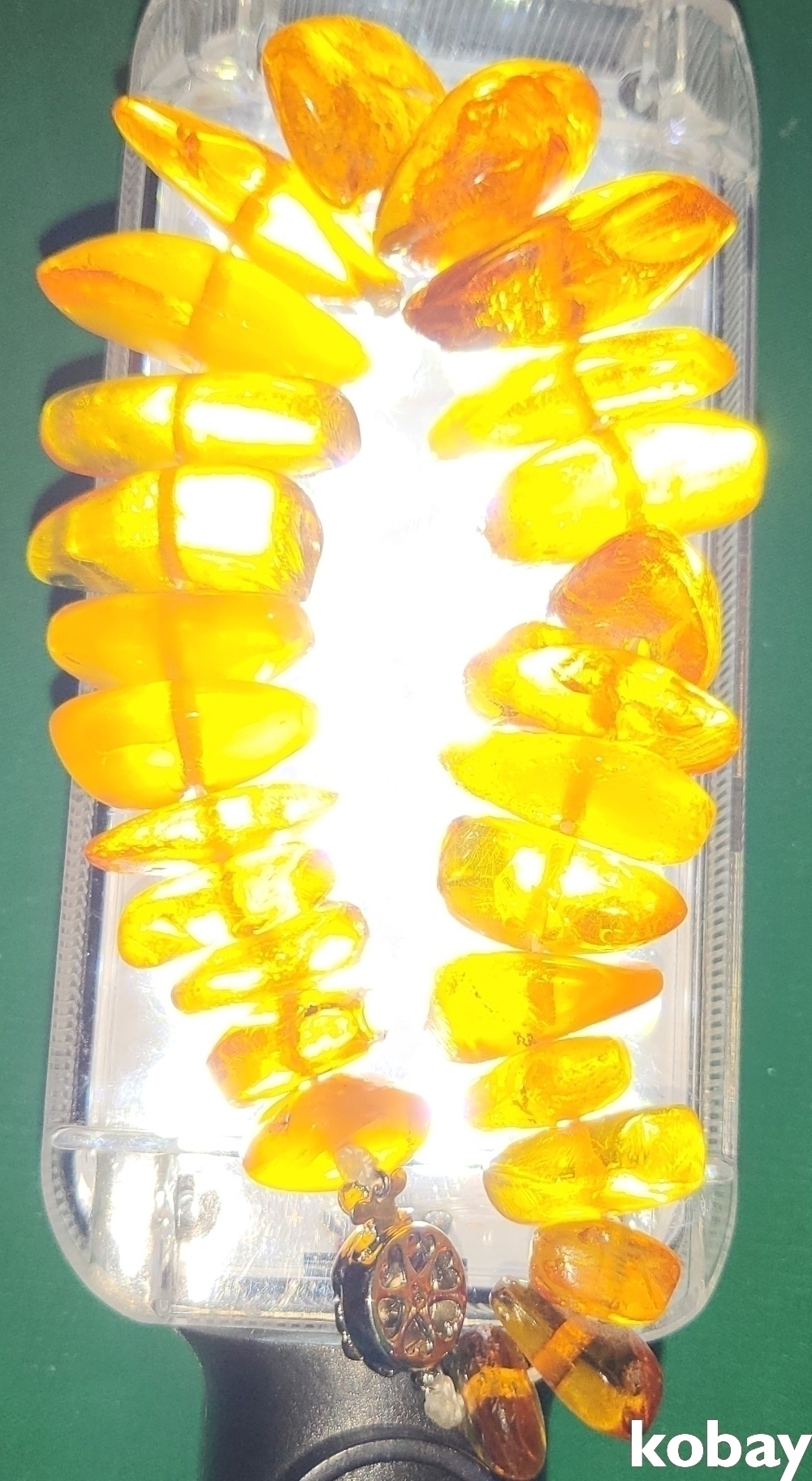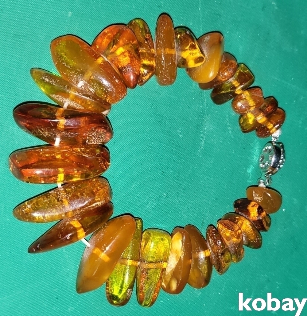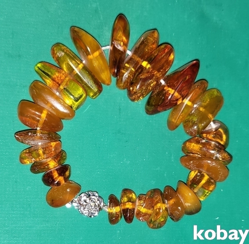 천연 금파 호박(琥珀:Amber) 보석(낙선제 표기) 팔지(고리 순은)입니다,