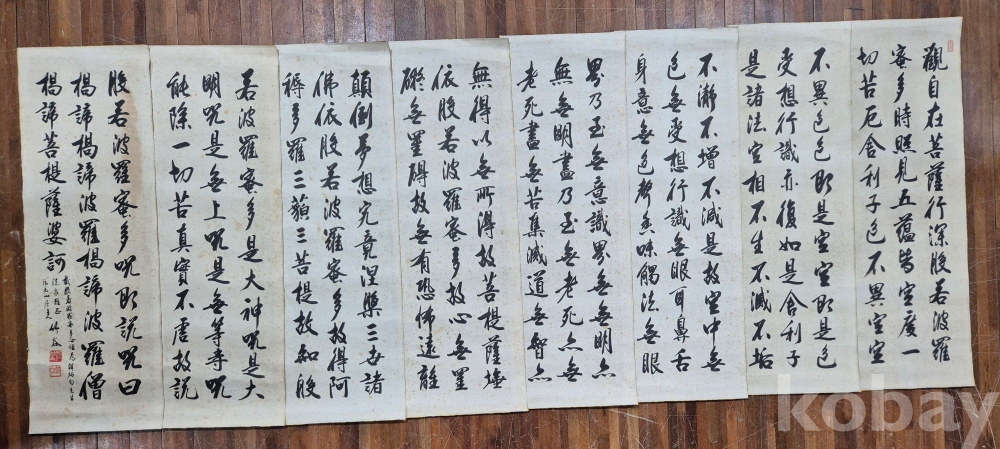 국전 심사위원 역임하신 예향 진도군 출신 유명 서예가 죽곡 박인혁'선생님 귀한 8폭 반야심경