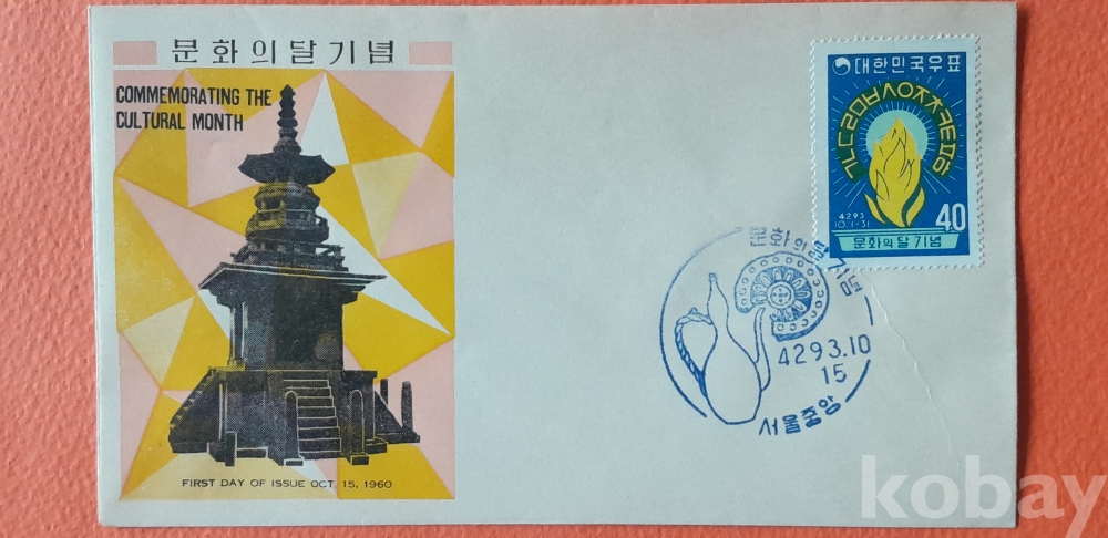 1960년 발행 문화의 달 기념 초일봉피 입니다.