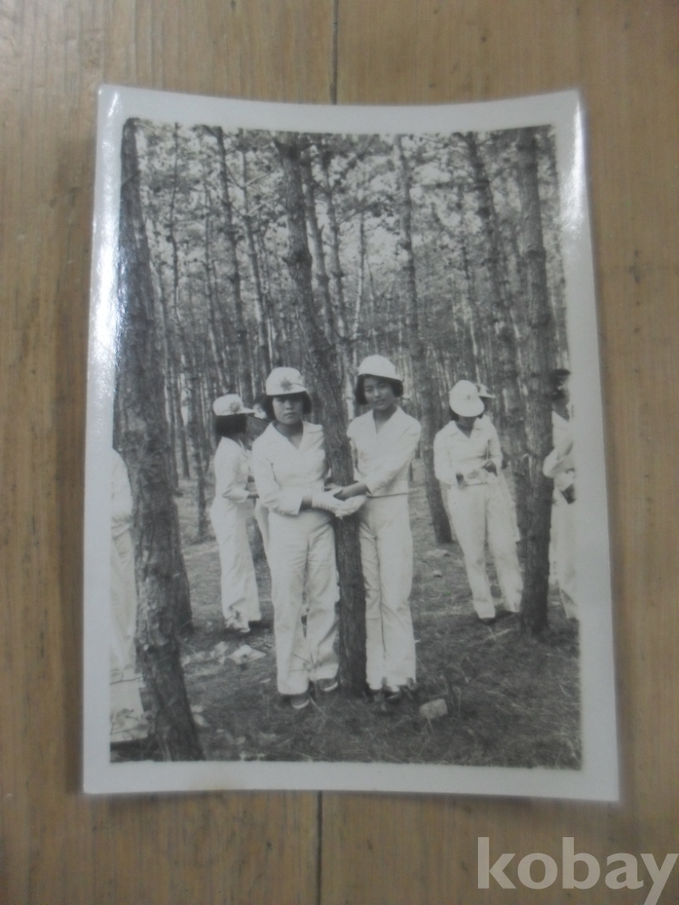 1309h)70년대 나무숲에서 여학생들 송충이 잡이 사진.
