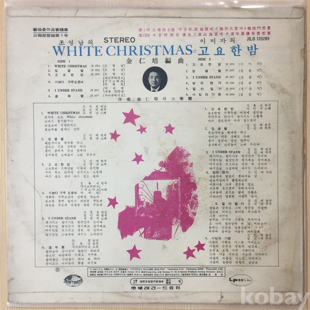 1. 화이트 크리스마스(조영남) 2. 징글벨(조영남) 3. 고요한 밤(조영남) 4. 기쁘다 구주오셨네(쟈니부러더즈,J씨스터즈,박재란) 5. I UNDERSTAND (박연숙,봉봉) 6. 송년가(쟈니부러더즈) | 1. 고요한 밤(이미자) 2. 징글벨(경음악) 3. I UNDERSTAND (경음악) 4. 밤의 찬가(경음악) 5. 딜라일라(경음악) 6. 사랑의 기쁨(경음악) |