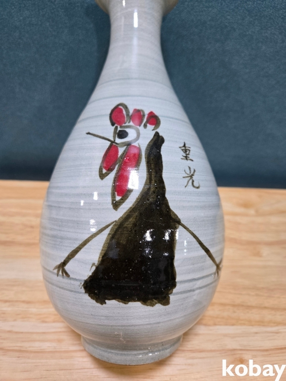 닭 그림 표현 주병 도자기 입니다.
