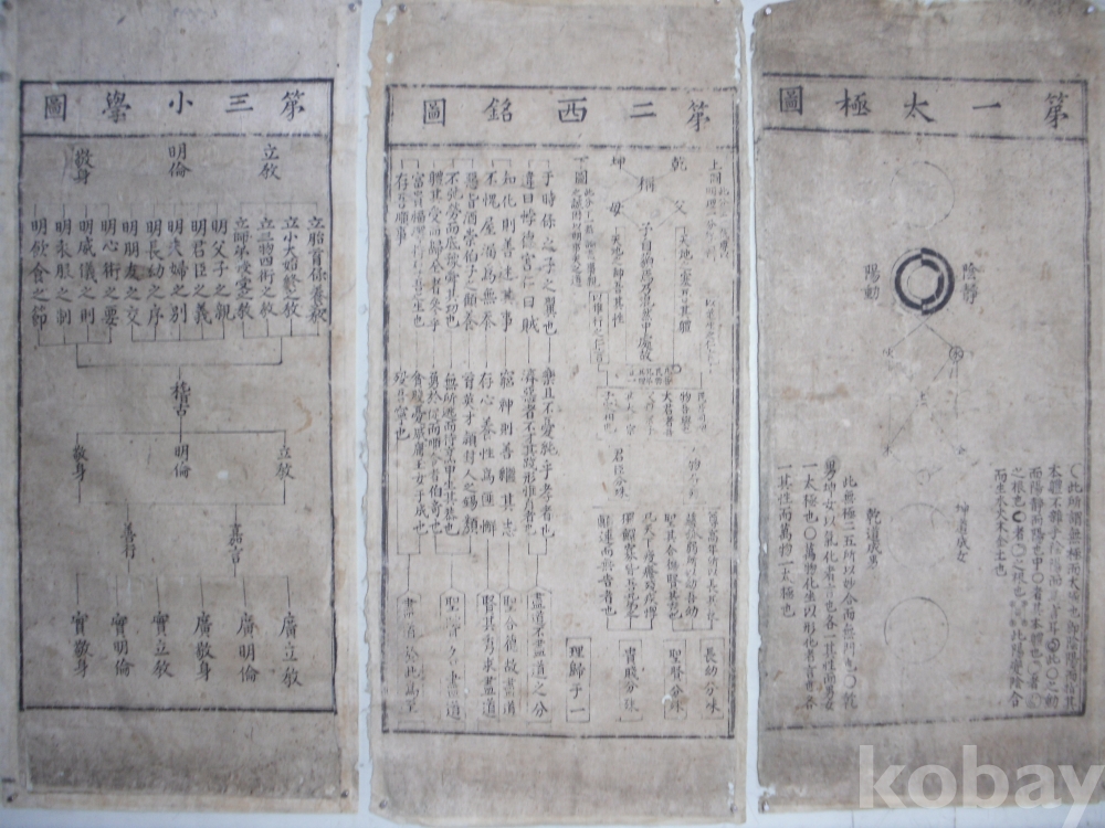 조선시대 도판과 글이 쓰여진 자료 3장입니다.