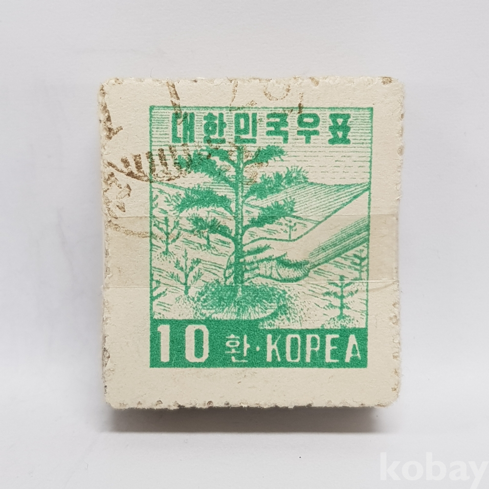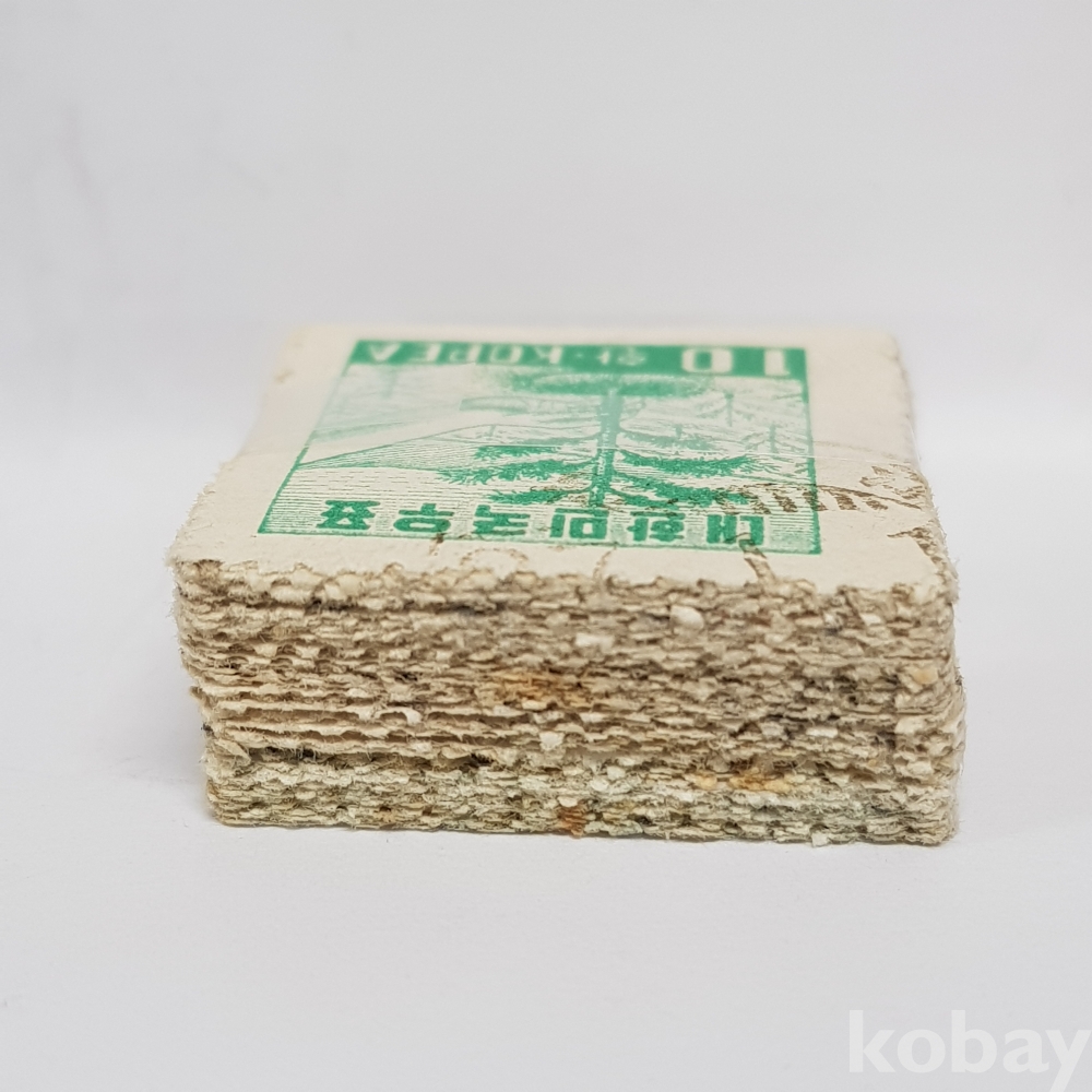 - 1953년 제 1차 환화 식수 10환 보통우표 일부인 미확인 사용제 우표 약 100매 묶음