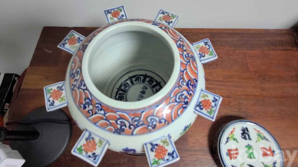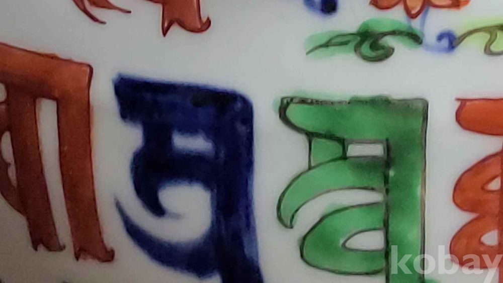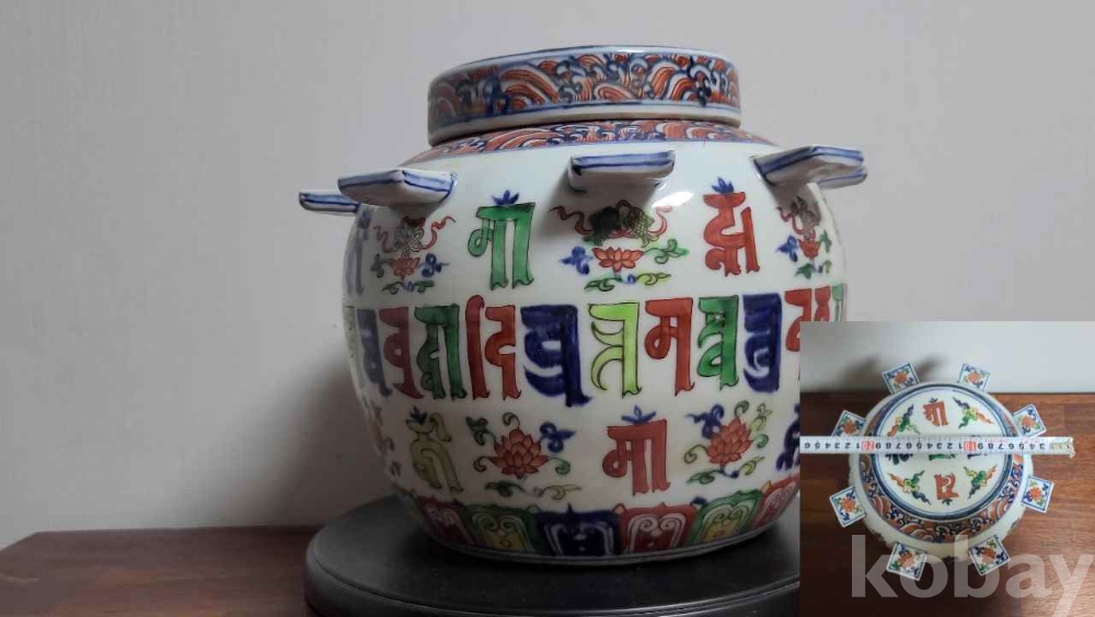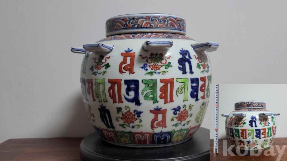 민국 박스에 담긴 도자기 입니다. 고대어인 범어가 가득히 담겨 있고 장식과 색상이 화려합니다. 즐거운 수집의 기회가 되시길 바랍니다.