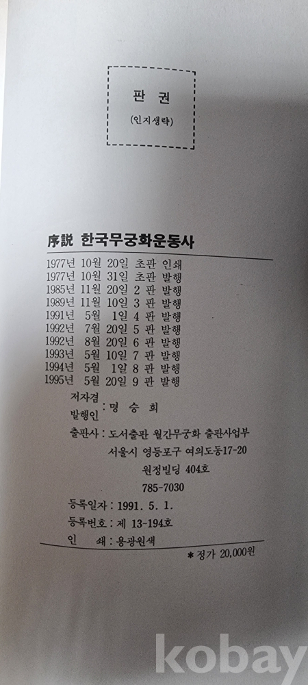[X38] <<서설 한국무궁화운동사>> / 명승희 저, 1995년 5월 20일 발행 9판