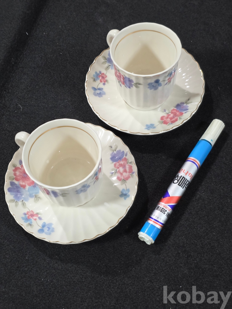 ​​​​(((도자기커피잔))) 오래전 꽃그림이 이쁜  커플 도자기 커피잔 & 잔받침 (행남사)
