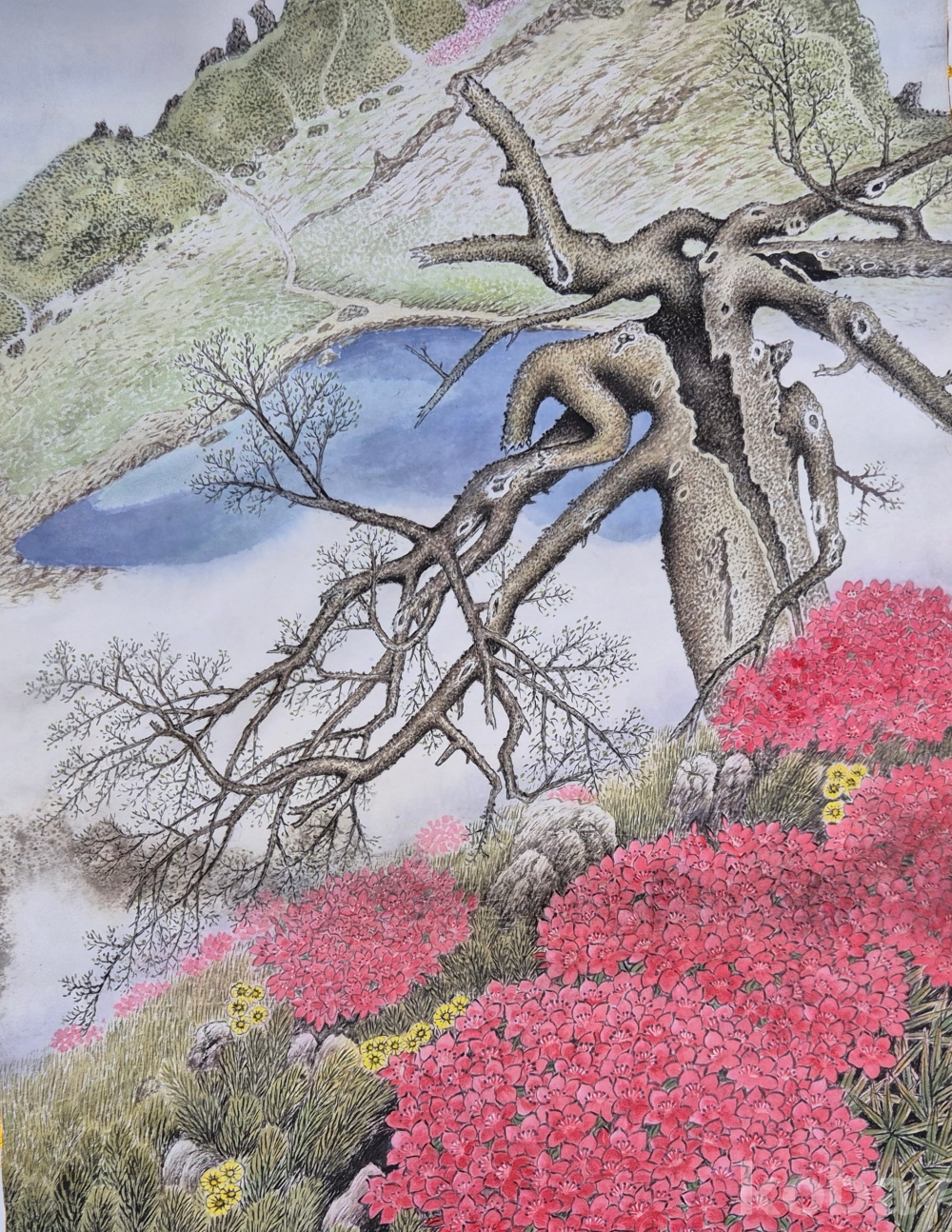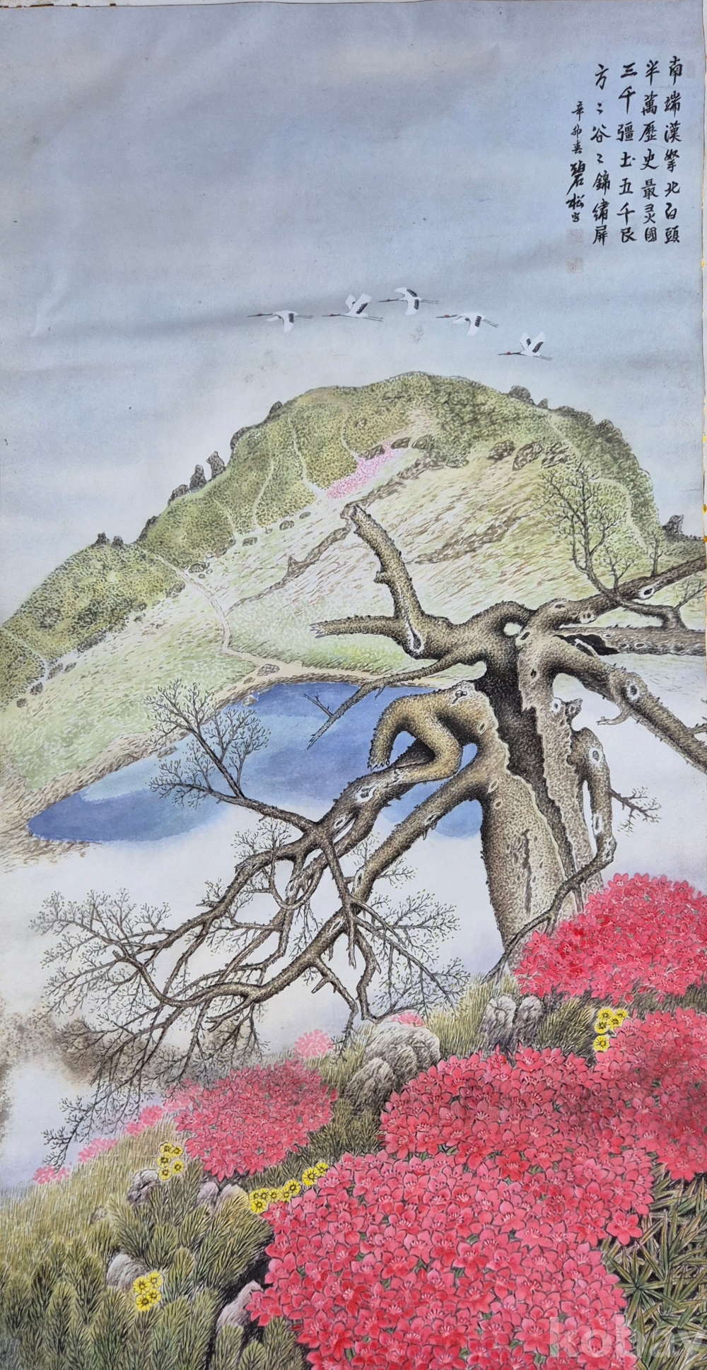 필력.색채감 최고의 홍익대 미대 출신 벽송'화백님 명품 전지크기 산수화'이오니 작품 이미지상 수결 및 낙관'등
