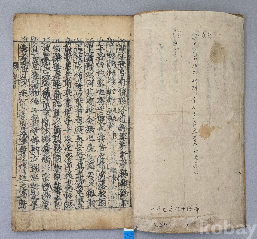 전체적으로 책 상태는 양호합니다. 책 속면에 후에 붓으로 글을 작성하여 뒤로 번져 나옵니다. 사진 참고 부탁드립니다.