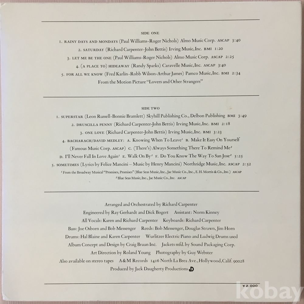 ⊙ 1971년 / 일본 / A&M Records – AML-92