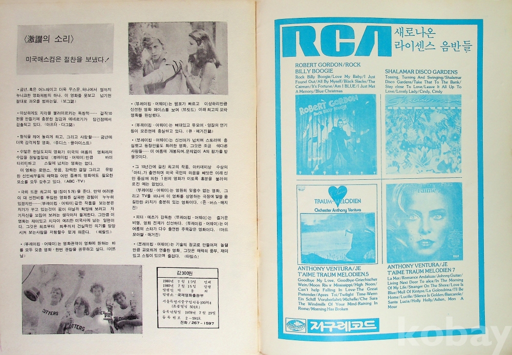 *부레이킹 어웨이/소책자, 팜플렛-출판사/국제영화출판부, 1980년, 값300원