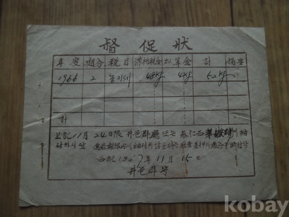 1967년 정읍군 발송 농지세 톡촉장 엽서