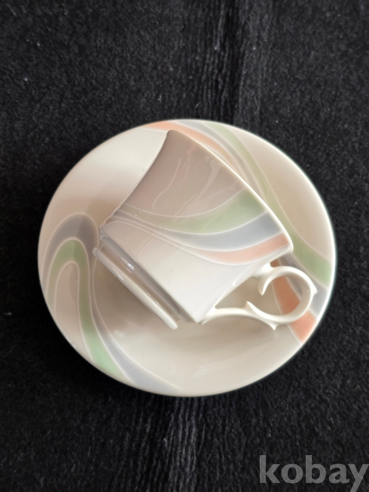 (((빈티지커피잔/도자기커피잔))) 오래전 문양이 이쁜 도자기커피잔 & 잔받침 (행남사)