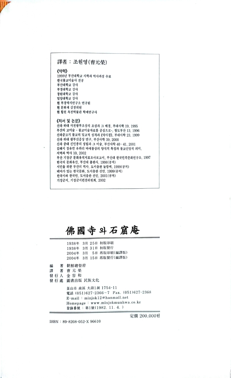 ㅇ조선총독부간행 『불국사와 석굴암』은 1938년 조선총독부가 발간한 조사보고서를 번역·영인한 도록으로, 석굴암과 불국사의 유적·유물 형태와 분포를 사진과 실측으로 정리한 자료 도록입니다