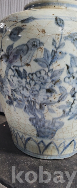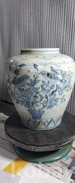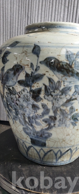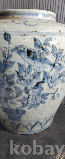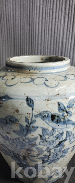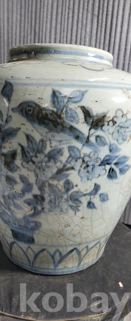다-150.오래된 수작업으로만들고 도공이그린목단 화조문 청화백자항아리