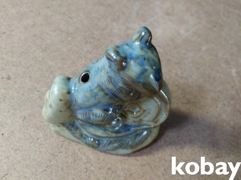 쥐와 옆전이 있는 연적 도자기 입니다.