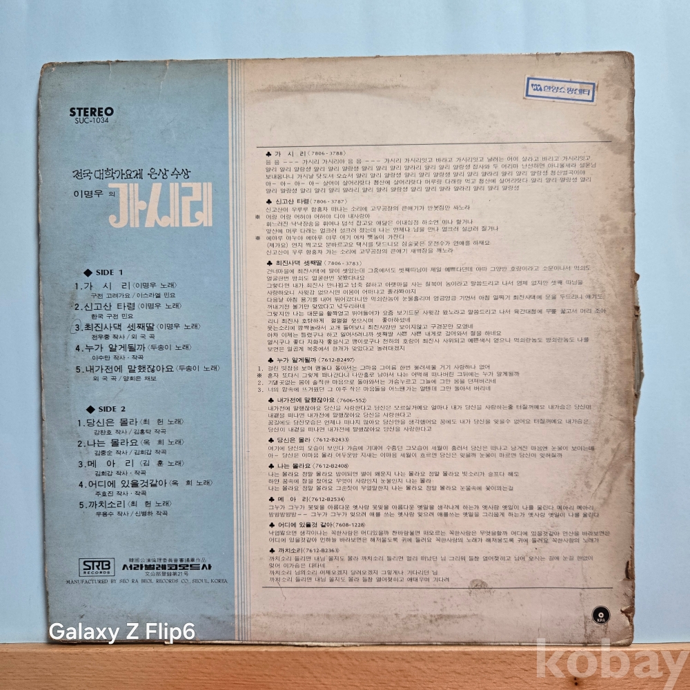 중고 LP인 관계로 취소나 반품도 불가합니다.