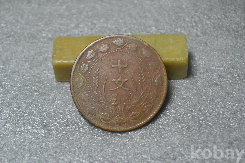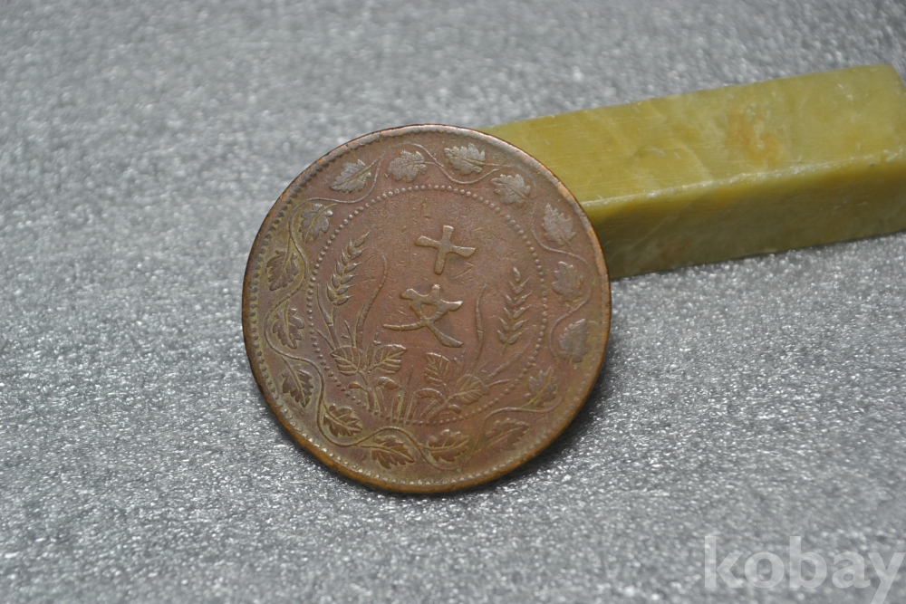 쌍기동폐 10문 종류 가운데서도 특히 자주 안보이는 귀한종류의 테두리면 잎사귀문양이 있는 쌍기 10문 입니다. (사진참조)