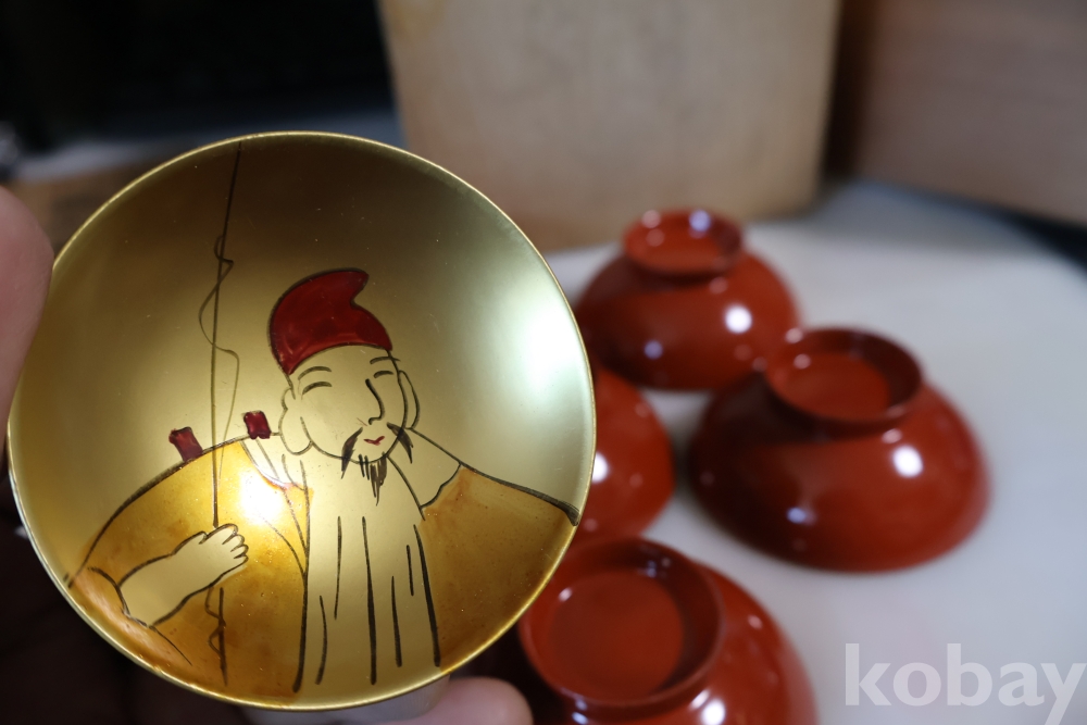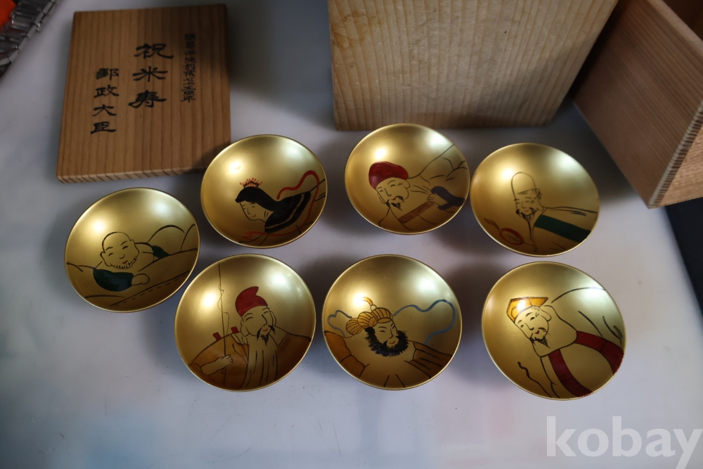 황금 칠기 우루시 칠기 나무 칠복신 세트 임니다 가볍고 단단한 일본 칠기 임니다