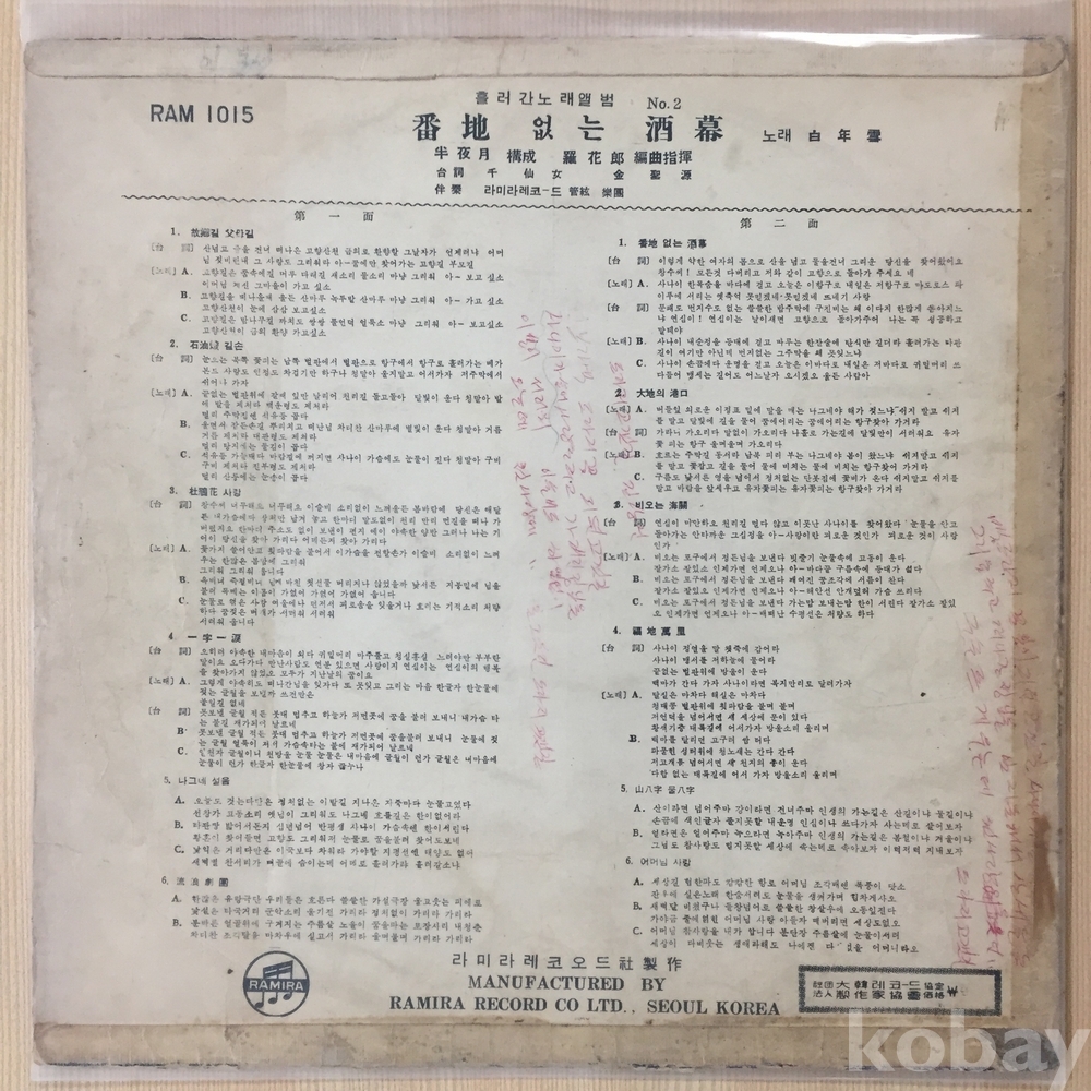 . 가요음반 대부분은 휘어짐이나 손상을 방지하기 위해 무지싱글자킷을 하나 더 사용하여 보관되었던 음반들입니다.