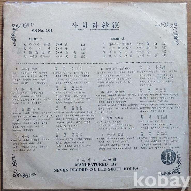 | 자켓상태 | EX : 약간의 마모, 모서리 찢김 존재 | 음반상태 | EX : 재생에 영향 없는 가벼운 기스 존재 | 발매정보 | 초반 | 가사지여부 | 유 |