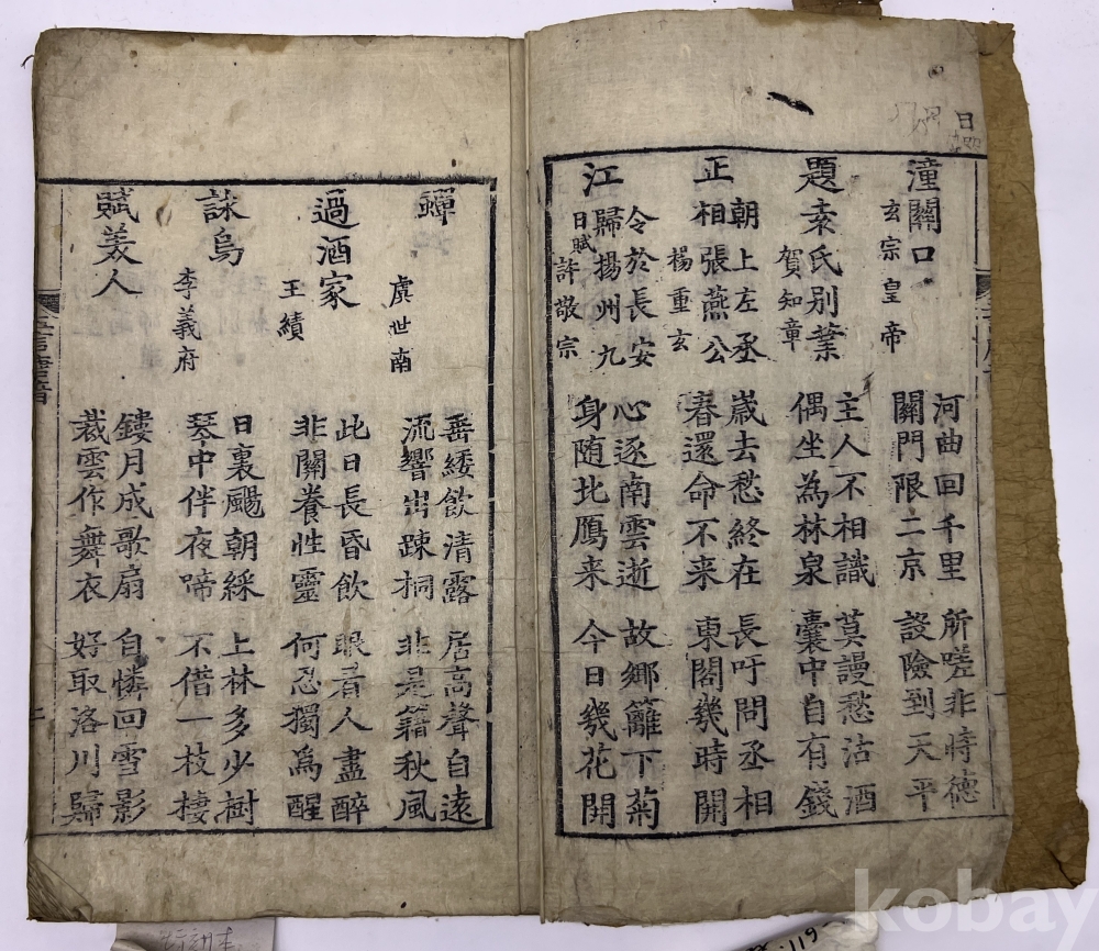 물 품 명 | <취향지가> [1] 경오중추이일동현개간(庚午仲秋二日銅峴開刊) 간기의 경판본 [오언당음(五言唐音)] 1책(單) | |||||
