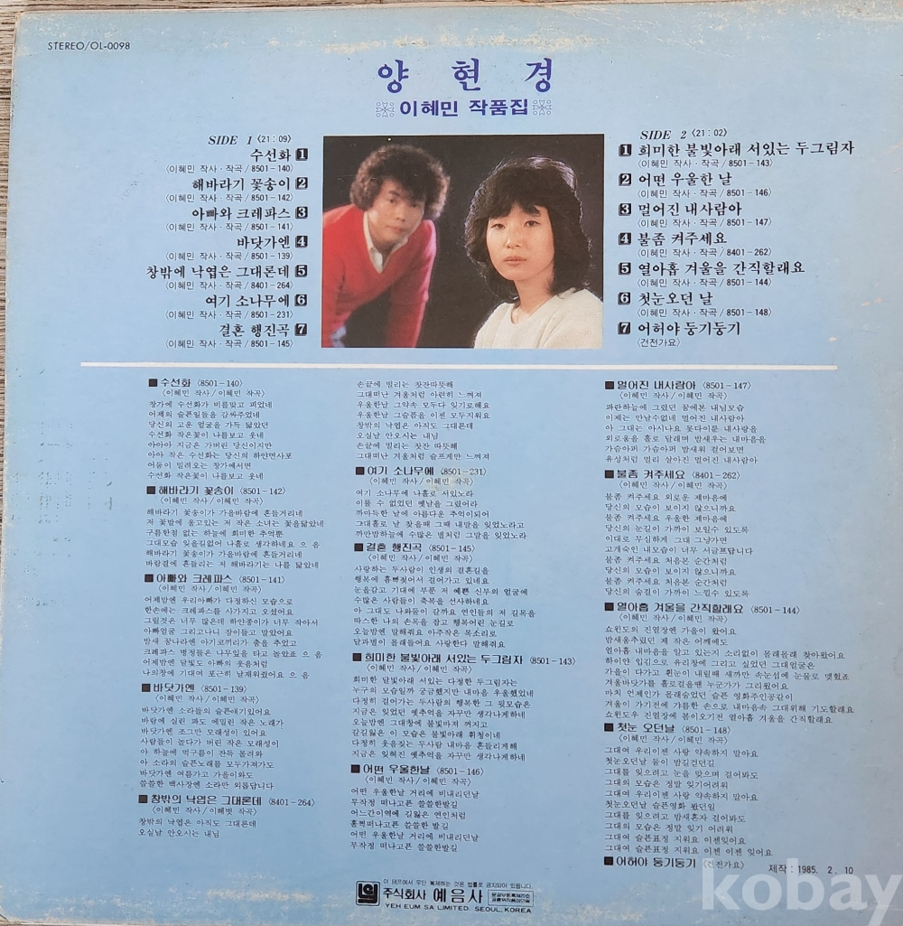 감성적 음색과 따뜻한 노래말이 좋은 양현경이 부른 이혜민 작품집.