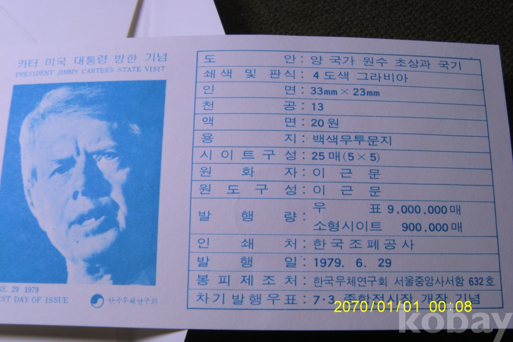 초일봉피=1979년6,29=카터미국대통령방한기념=광화문우체국