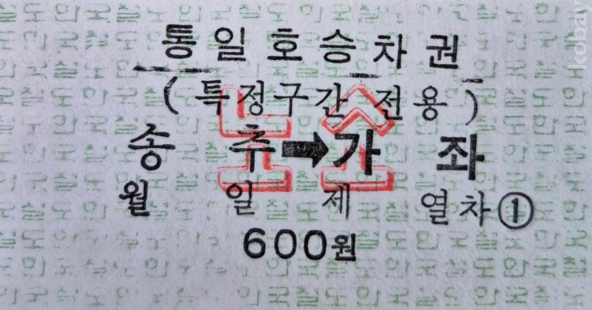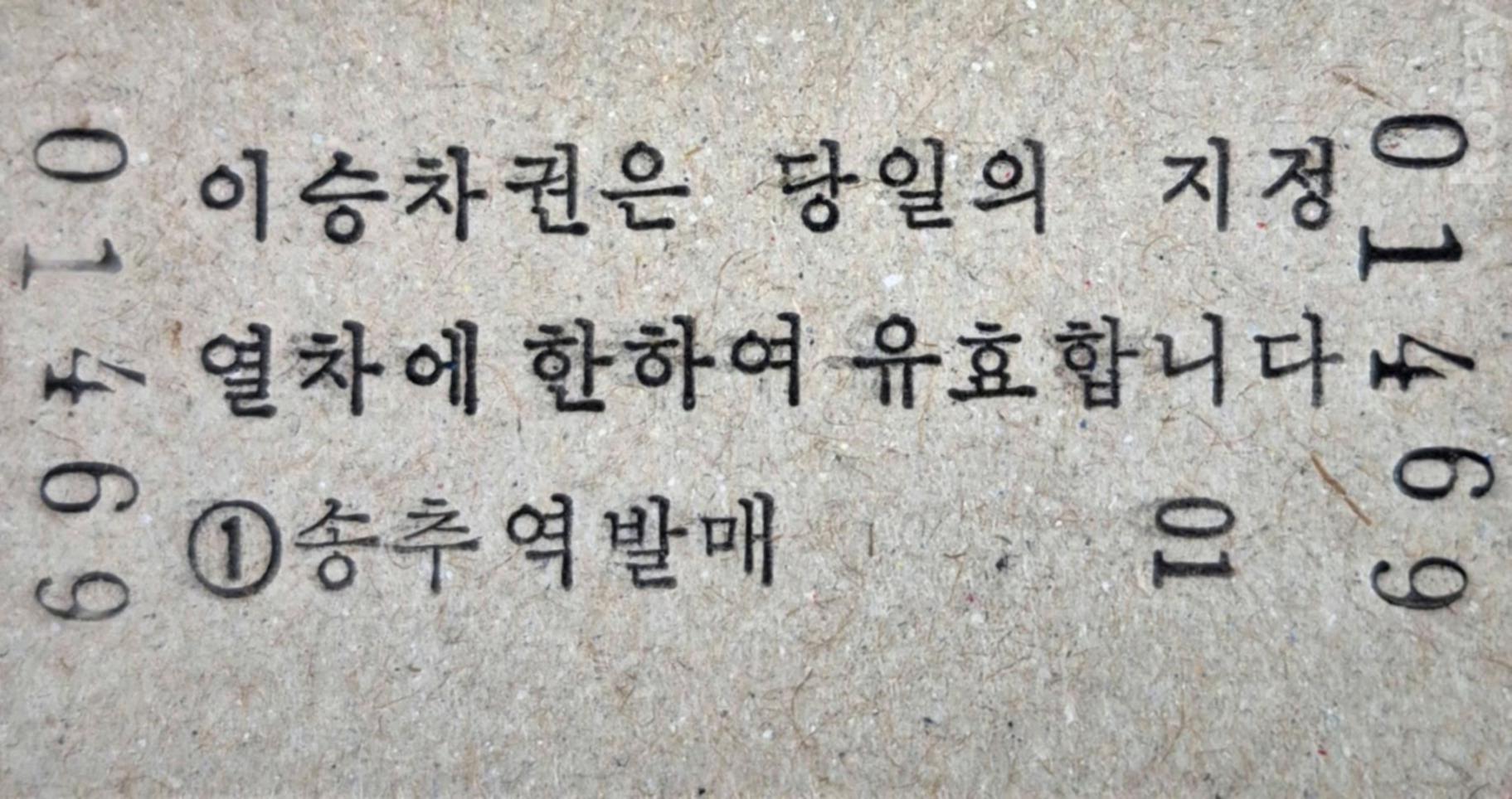 통일호 승차권 송추-가좌 특정구간 노소입니다.