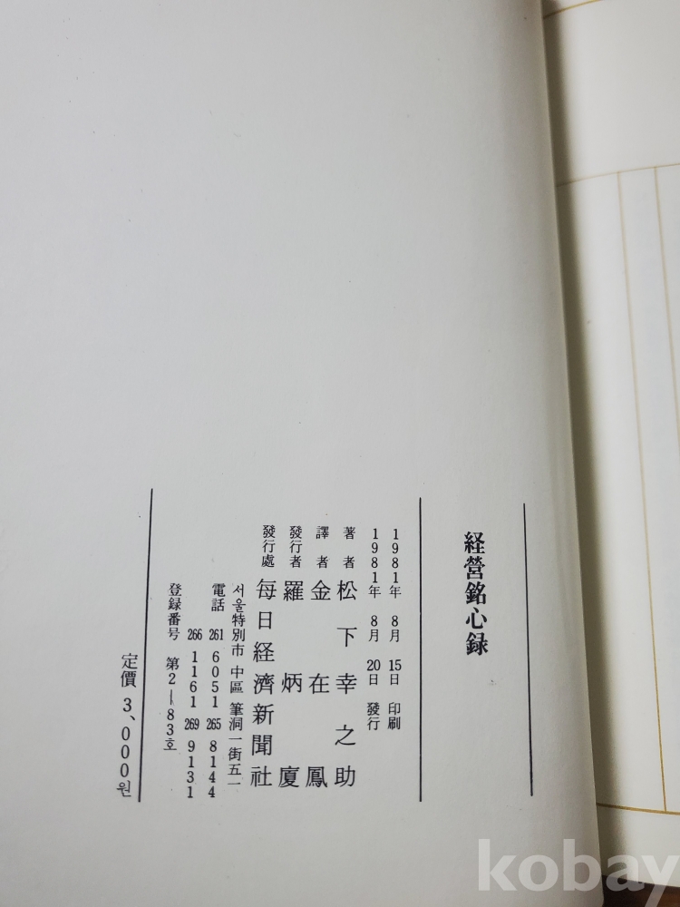 1. 경영명심록, 송하행지조(松下幸之助), 매일경제신문사, 1981년, 142쪽, 상태 상, 사진 참조