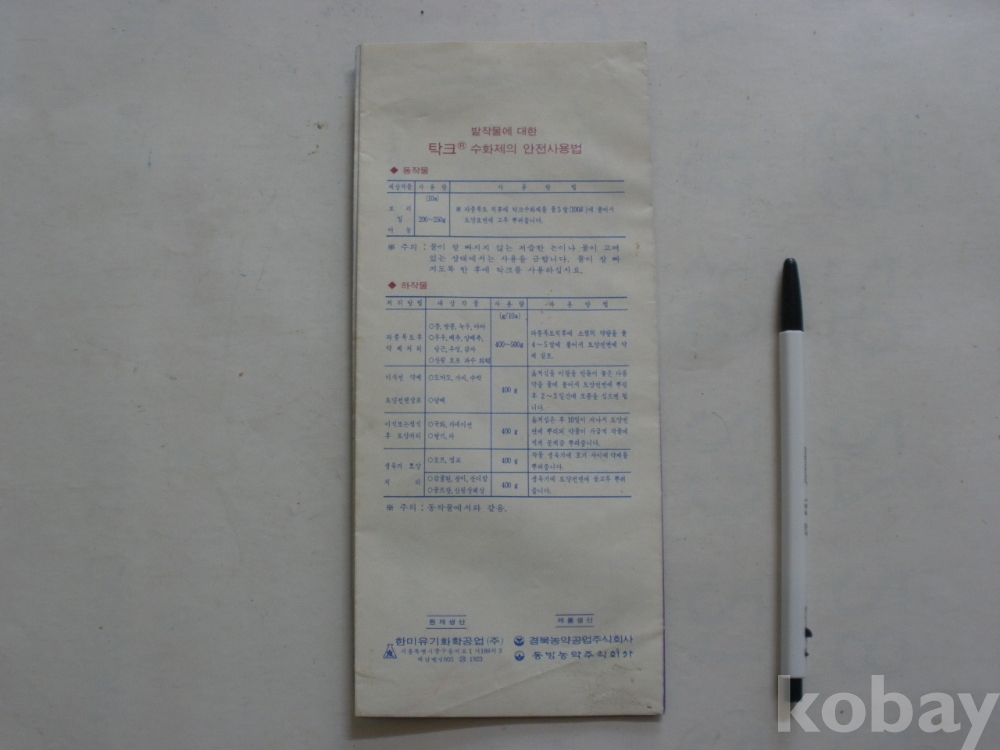 선택성 제초제 - 탁크 수화제 (한미유기화학공업 등)