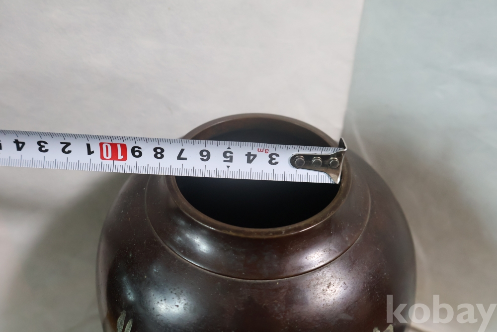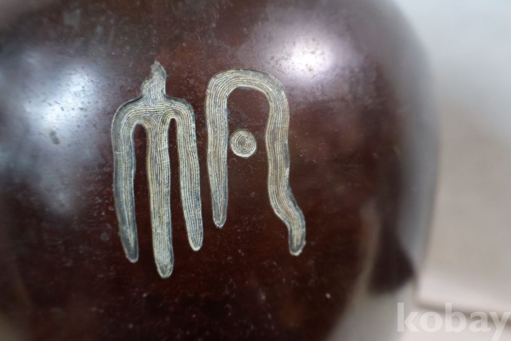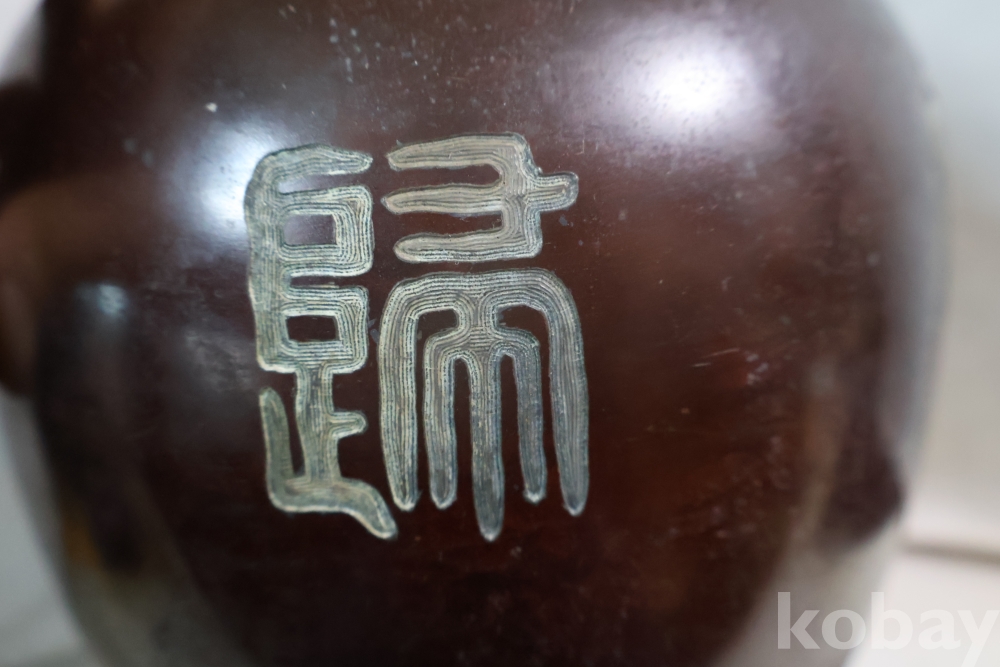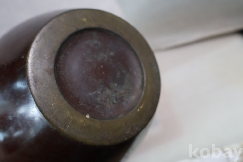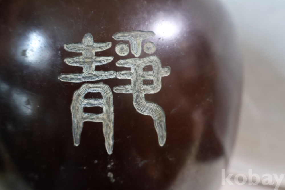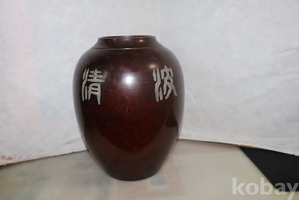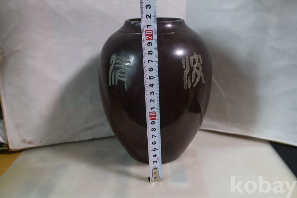 명치기 혹은 1920대의 청동 화병 임니다 묘한 글자를 일일이 조각한 고태미를 가진 정성을 가진 명품 임니다 세월의 스크래치가 보이는 유일무이한 묵직한 명물 임니다