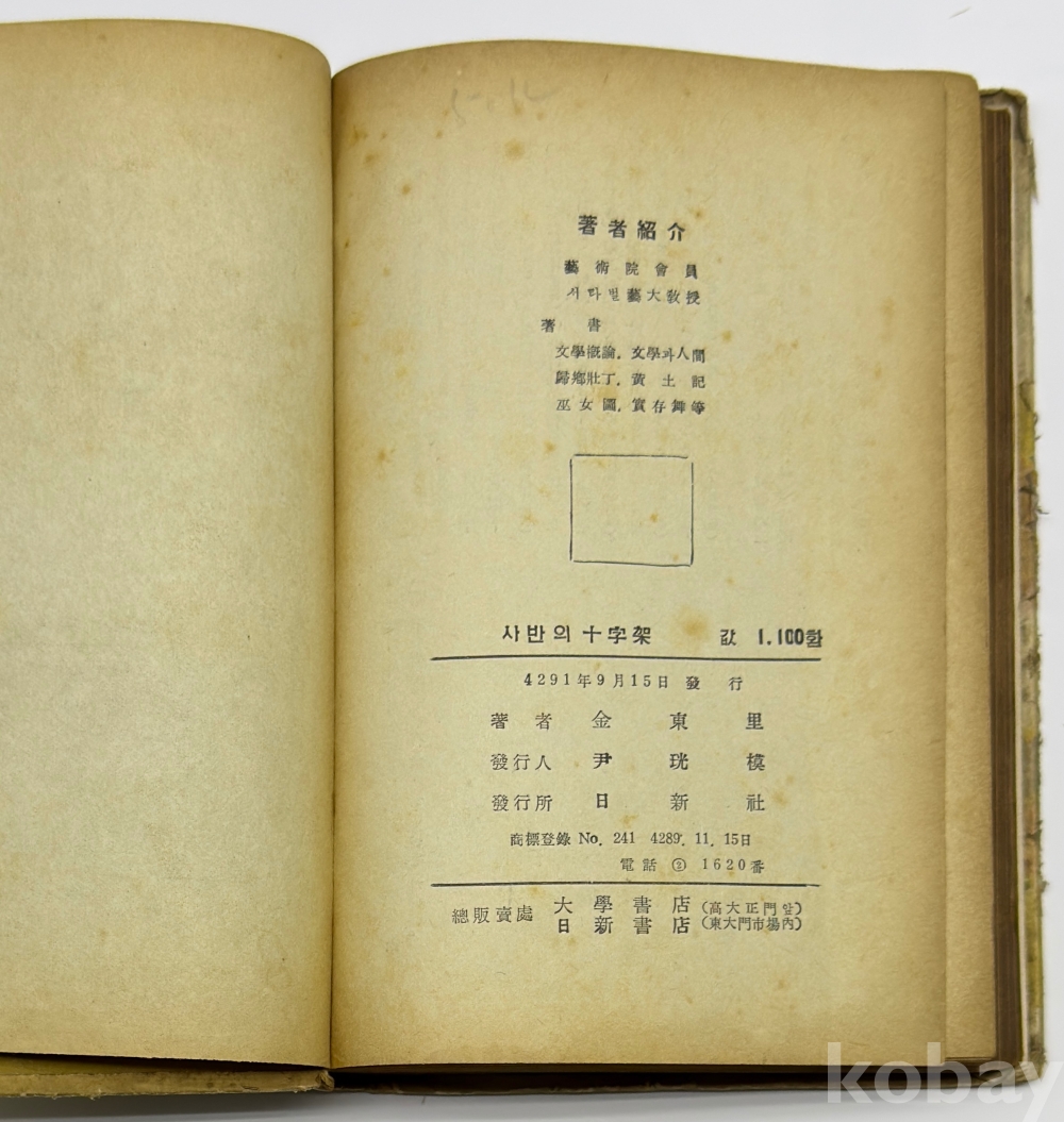 물 품 명 | <취향지가> [29] 1958년 소설가 김동리의 [사반의 십자가(十字架)] 1책 | |||||