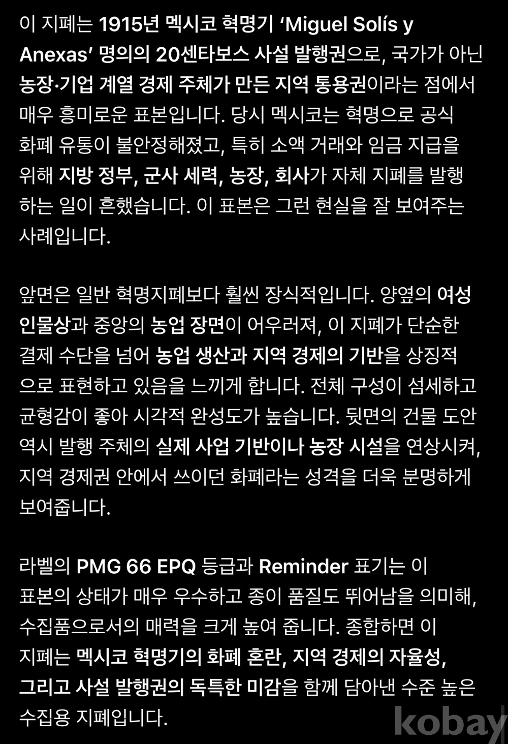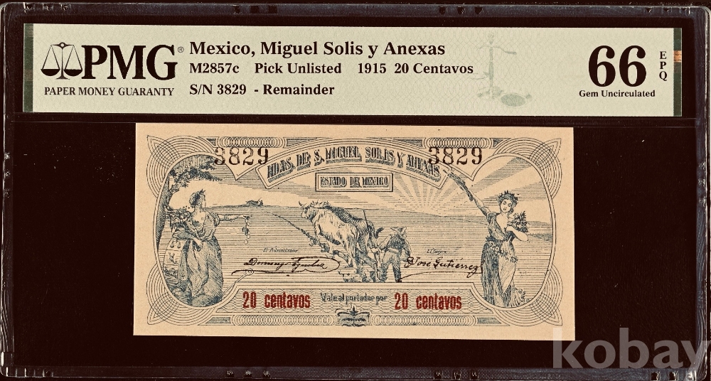 [명품지폐](희소) 1915년 멕시코 20 센타보스 PMG 66 EPQ