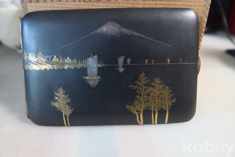 일본 담배 케이스 임니다 작가의 낙관을 가진 섬세 정교한 당대의 명품 임니다 후지산과 일본 집 등등 특유의 명품 임니다