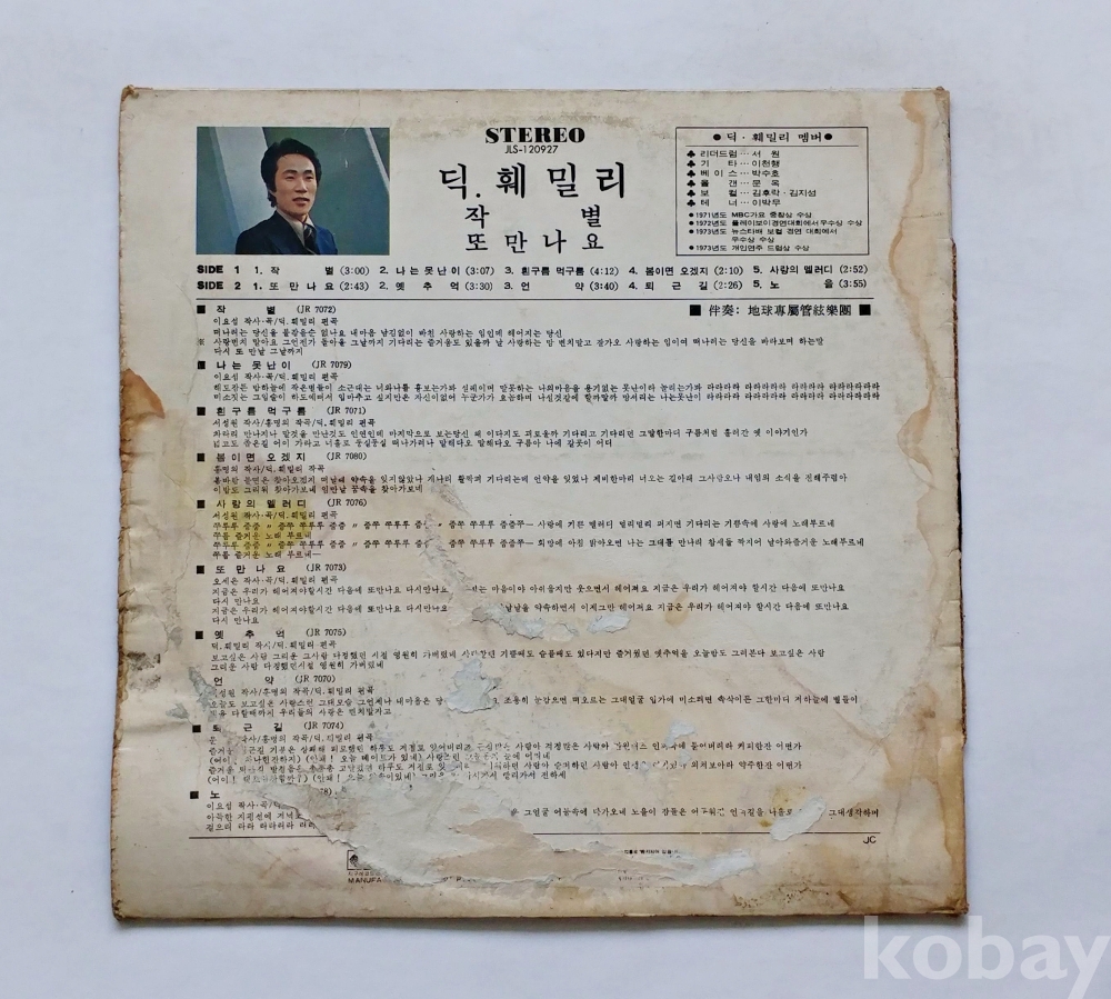 | 자켓상태 | VG : 주름, 접힘, 모서리 찢김 다수 | 음반상태 | EX : 재생에 영향 없는 가벼운 기스 존재 | 발매정보 | 알수없음 | 가사지여부 | 무 |