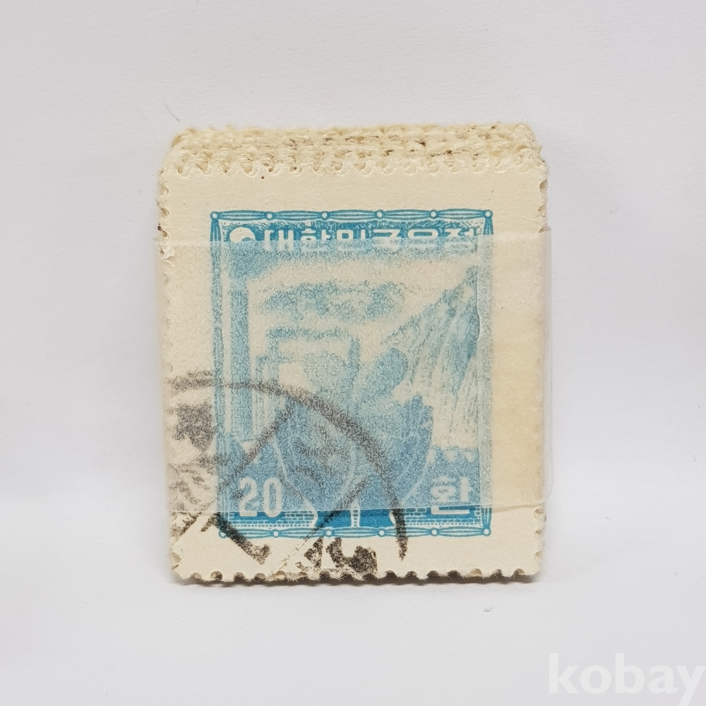 - 1950년대 산업부흥 새싹, 수력발전과 공장 20환 보통우표 일부인 미확인 사용제 우표 약 100매 묶음