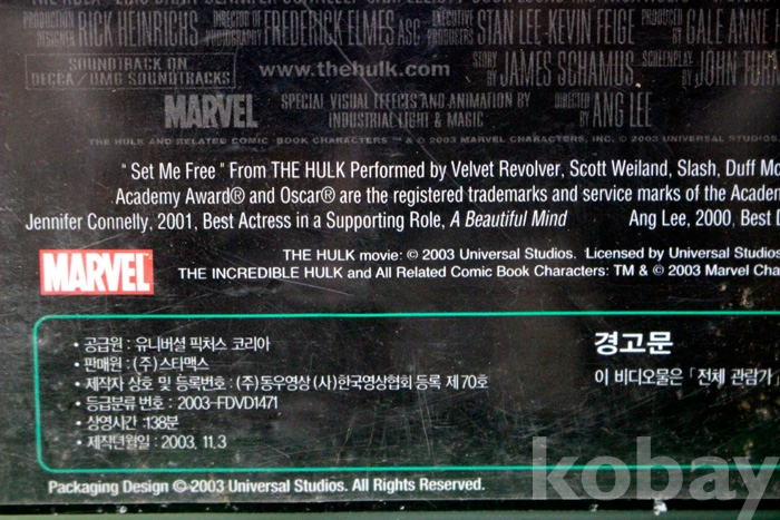 (비디오) 헐크 - 제니퍼 코넬리 / 에릭 바나...주연