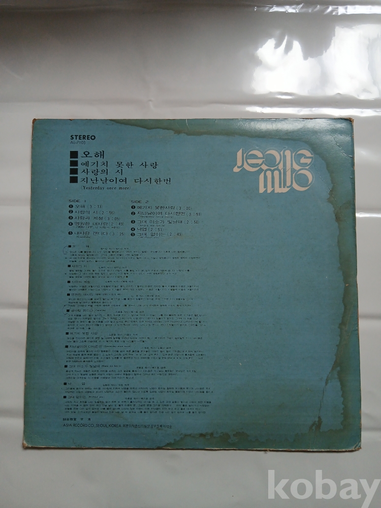 | 자켓상태 | G : 눈에 띄는 손상, 테이프, 필기 존재 | 음반상태 | VG : 생활 기스 다수, 가벼운 노이즈 존재 | 발매정보 | 초반 | 가사지여부 | 무 |