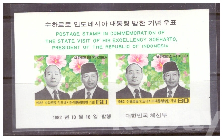 (한국시트) 1982.10.16 수하르토 인도네시아대통령 방한 sheet of 2 MNH