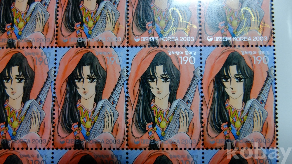 김혜린 불의검 만화 시리즈 우표 만화우표 한국 유명 만화작품 만화가 전지 우표 고전만화 한국 조폐 공사 제조 디자인 박은경
