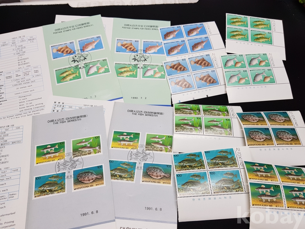- 1990년대 어류시리즈 시트, 명판, 안내카드 등 모음
