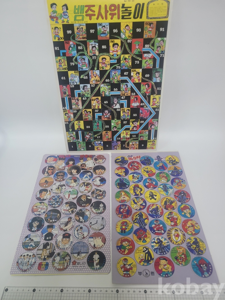 회장님 회장님 우리회장님 뱀주사위 놀이와 우뢰매 대형 딱지가 인쇄된 건담색칠놀이2점