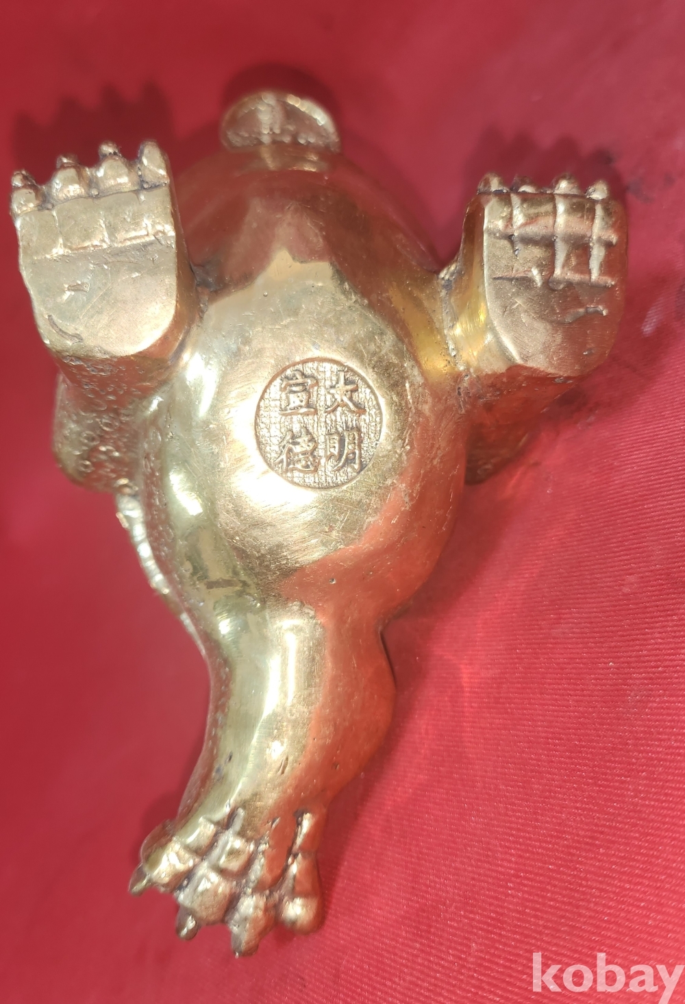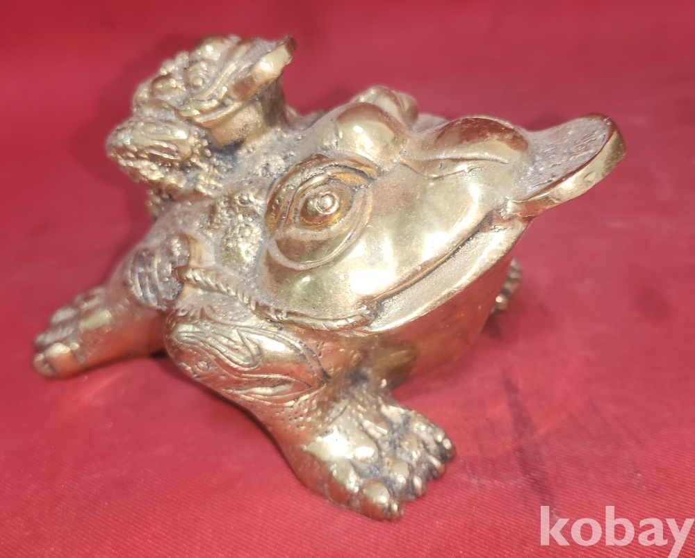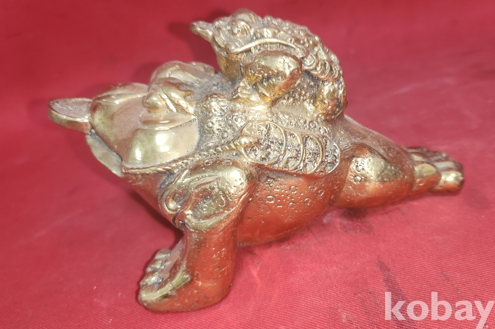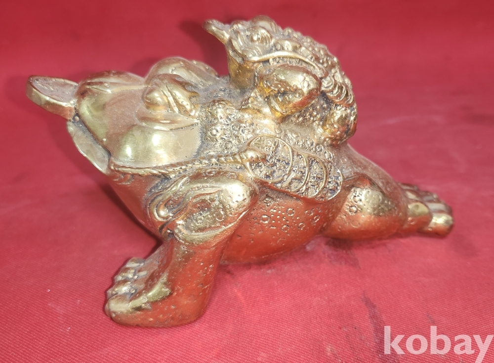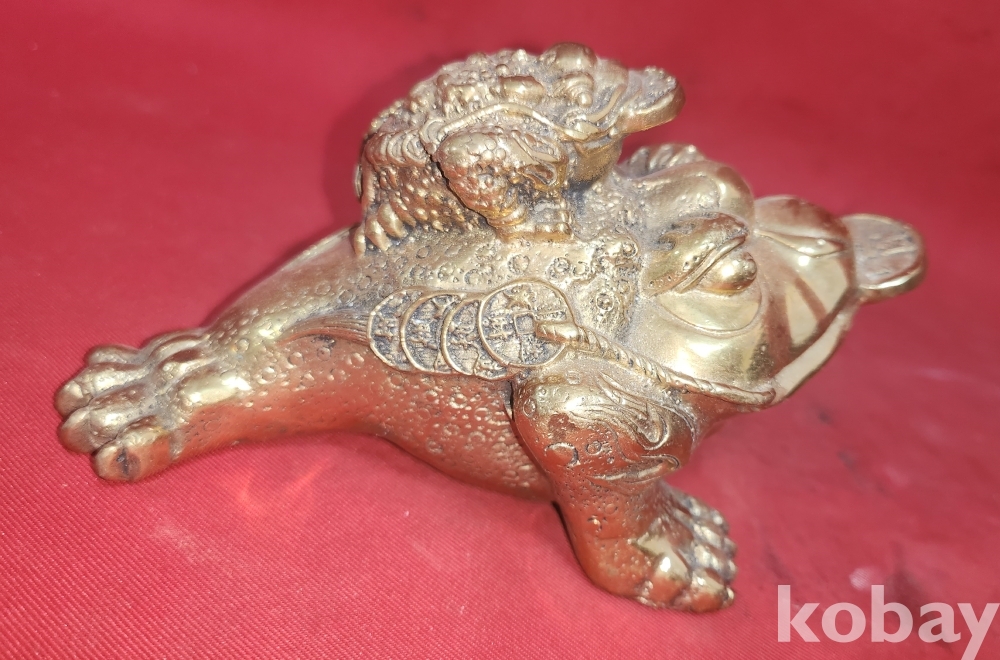 Kㅡ125차 으4앞 스치번 ////// 청동으로 만든 엽전을 입에물고 등에는 새끼를 업고있는 복 두꺼지 조각품입니다,